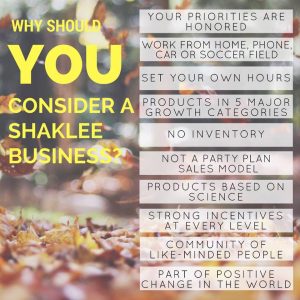 - Guidance from me and Shaklee on how to feel and look your best.